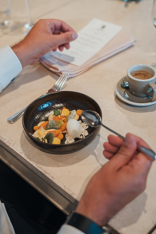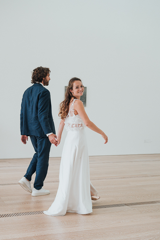 Von dort ging es weiter zum Standesamt in der Basler Innenstadt, bevor das Brautpaar in einem Oldtimer-Cabrio zur Fondation Beyeler fuhr. Dort entstanden nicht nur beim gemeinsamen Mittagessen, sondern auch beim Hochzeitsshooting im Fondation Beyeler Museum ganz besondere, zeitlose Aufnahmen.