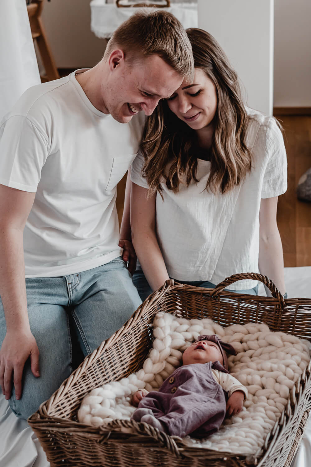 Mama und Papa sind natürlich das ganze Shooting über mit dabei. Braucht der Nachwuchs mal eine Pause oder ist die Windel voll? Keine Angst, bei meinen Neugeborenen-Shootings schau ich nicht genau auf die Uhr. Die Kleinen geben hier das Tempo an und wir schauen ganz individuell, was möglich ist.